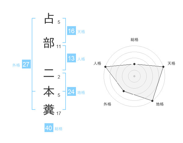 占部 二本糞さんを姓名の画数から五運を鑑定