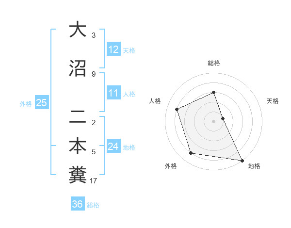 大沼 二本糞さんを姓名の画数から五運を鑑定