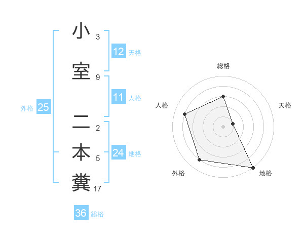 小室 二本糞さんを姓名の画数から五運を鑑定