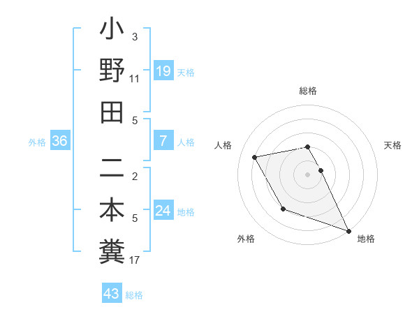 小野田 二本糞さんの外格は36画の3点!