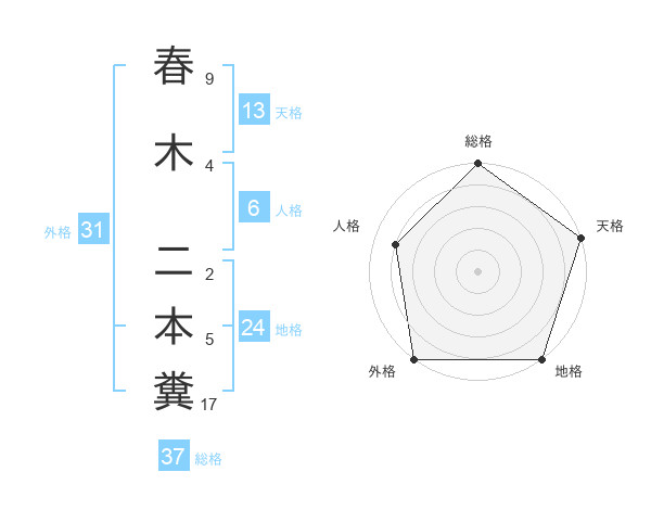 春木 二本糞さんを姓名の画数から五運を鑑定