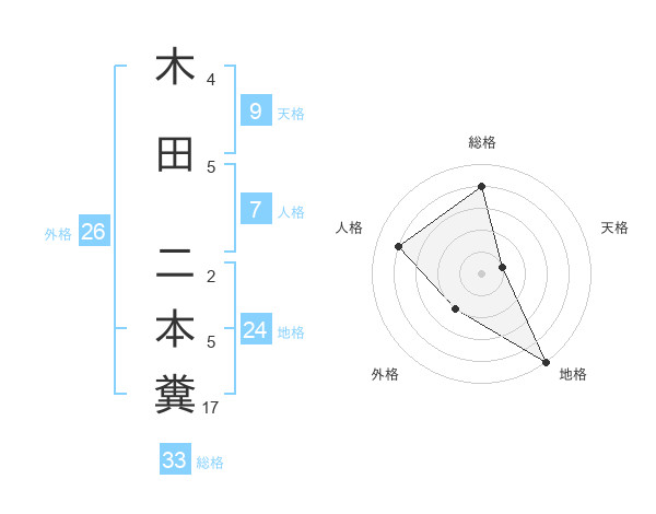 木田 二本糞さんを姓名の画数から五運を鑑定