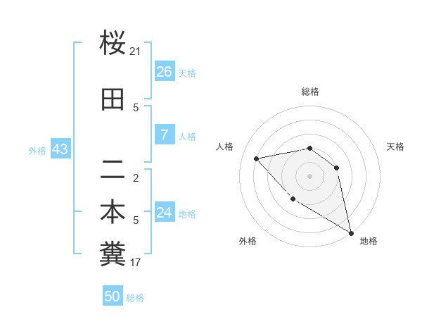 桜田 二本糞さんを姓名の画数から五運を鑑定