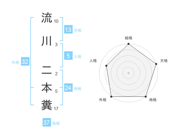 流川 二本糞さんの総格は37画の5点!