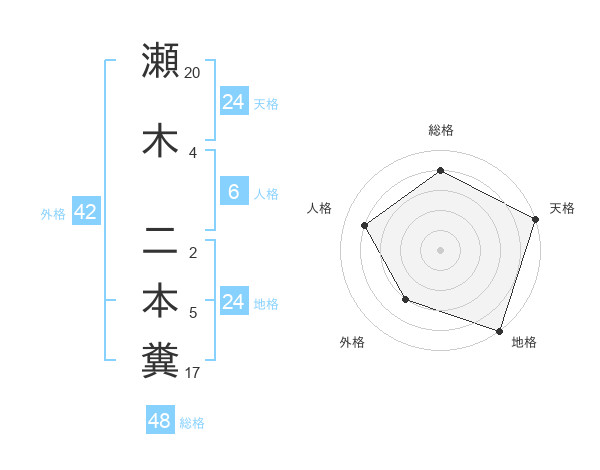 瀬木 二本糞さんを姓名の画数から五運を鑑定