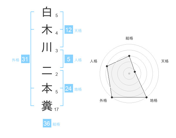 白木川 二本糞さんを姓名の画数から五運を鑑定