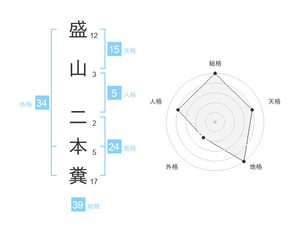 盛山 二本糞さんを姓名の画数から五運を鑑定