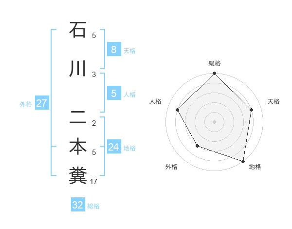 石川 二本糞さんの総格は32画の5点!
