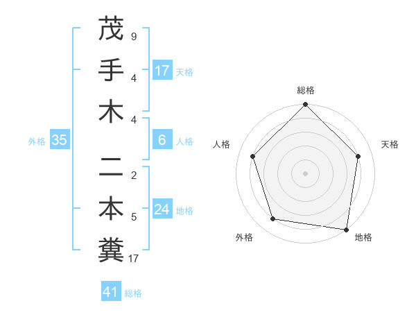 茂手木 二本糞さんを姓名の画数から五運を鑑定