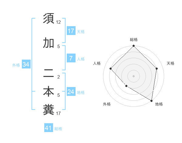 須加 二本糞さんを姓名の画数から五運を鑑定