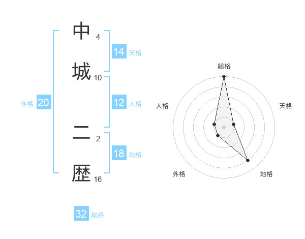 中城 二歴さんの総格は32画の5点!
