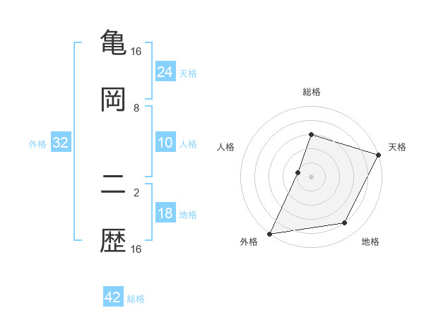 亀岡 二歴さんの外格は32画の5点!