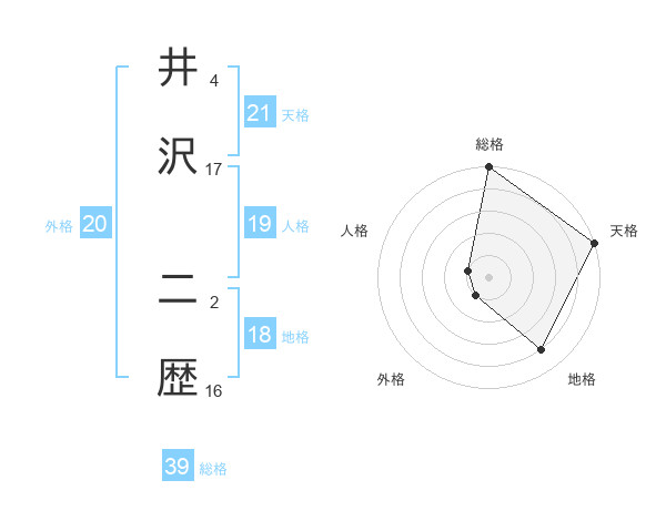井沢 二歴さんの総格は39画の5点!