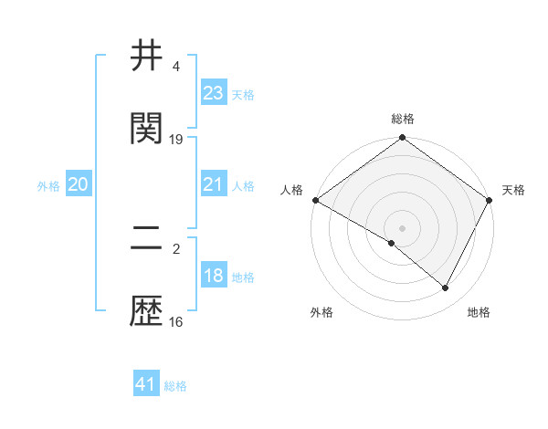 井関 二歴さんの天格は23画の5点!