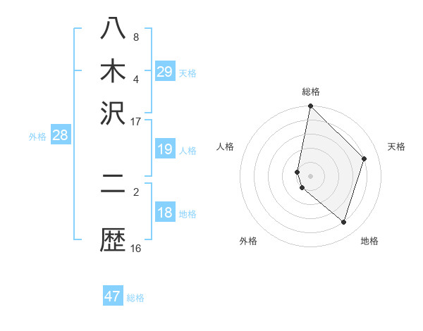八木沢 二歴さんを姓名の画数から五運を鑑定