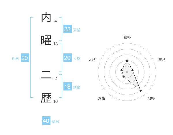 内曜 二歴さんの総格は40画の2点!