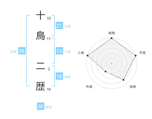 十鳥 二歴さんの総格は39画の5点!