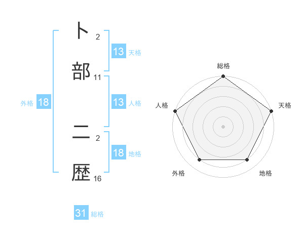 卜部 二歴さんを姓名の画数から五運を鑑定