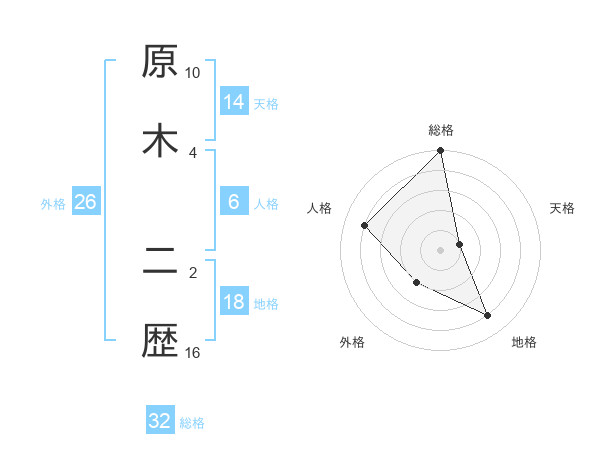 原木 二歴さんの総格は32画の5点!