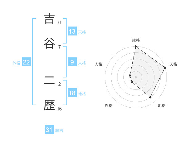 吉谷 二歴さんを姓名の画数から五運を鑑定