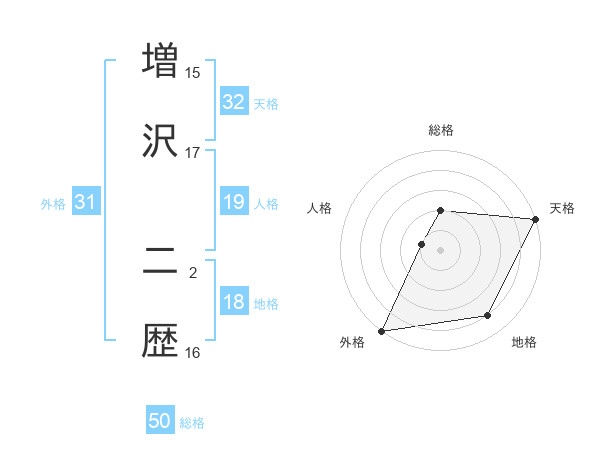増沢 二歴さんの総格は50画の2点!