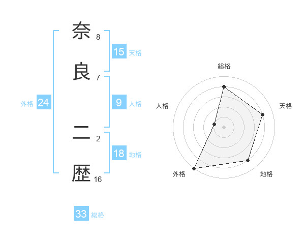 奈良 二歴さんの総格は33画の4点!