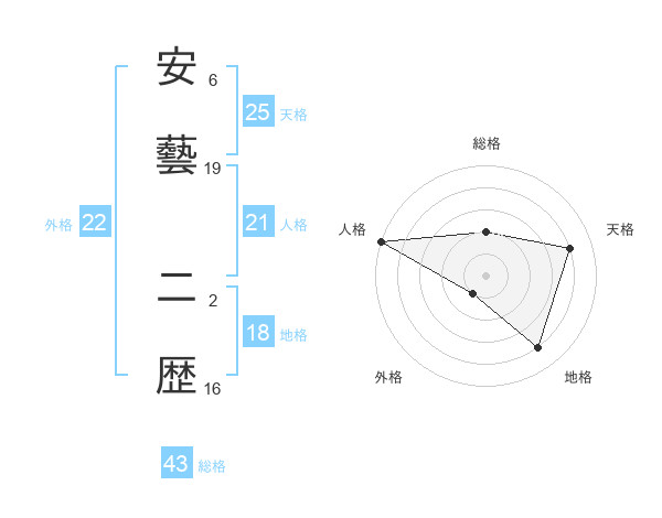 安藝 二歴さんを姓名の画数から五運を鑑定