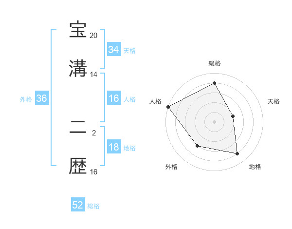 宝溝 二歴さんの総格は52画の4点!