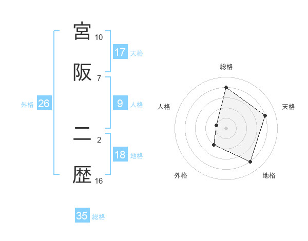 宮阪 二歴さんの総格は35画の4点!