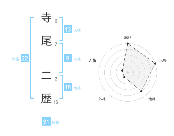 寺尾 二歴さんを姓名の画数から五運を鑑定