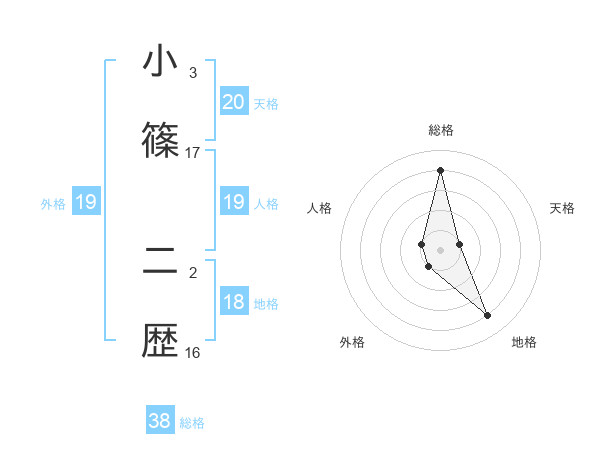 小篠 二歴さんを姓名の画数から五運を鑑定