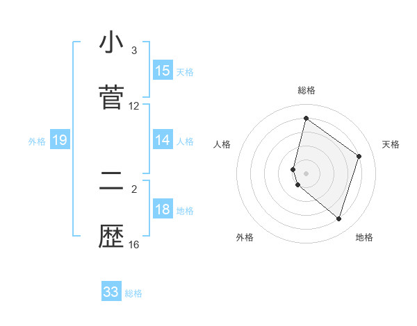小菅 二歴さんの外格は19画の1点!