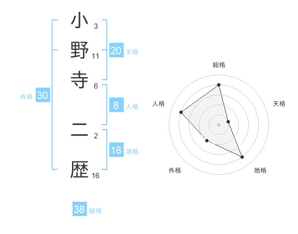 小野寺 二歴さんの総格は38画の4点!