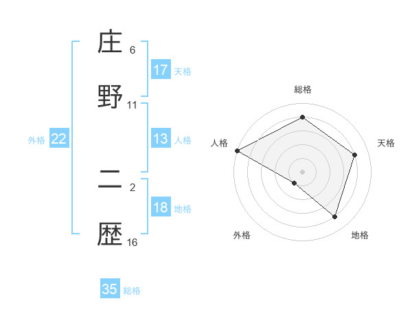 庄野 二歴さんを姓名の画数から五運を鑑定
