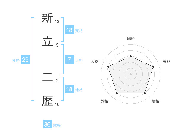 新立 二歴さんの天格は18画の4点!