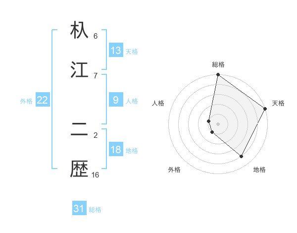 杁江 二歴さんを姓名の画数から五運を鑑定