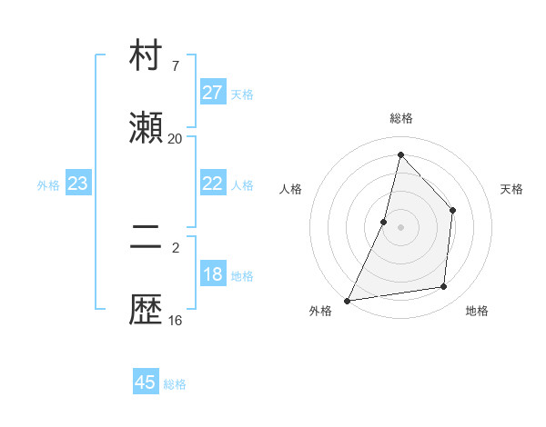 村瀬 二歴さんの総格は45画の4点!