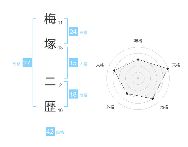 梅塚 二歴さんの総格は42画の3点