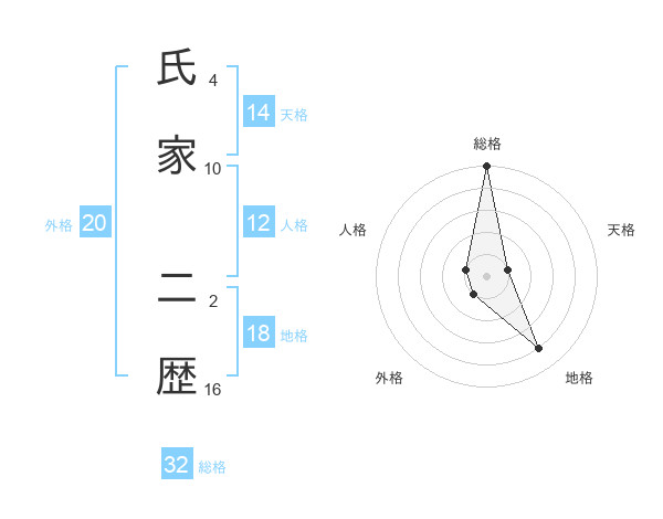 氏家 二歴さんの総格は32画の5点!