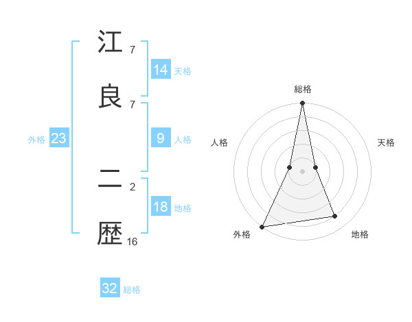 江良 二歴さんの総格は32画の5点!