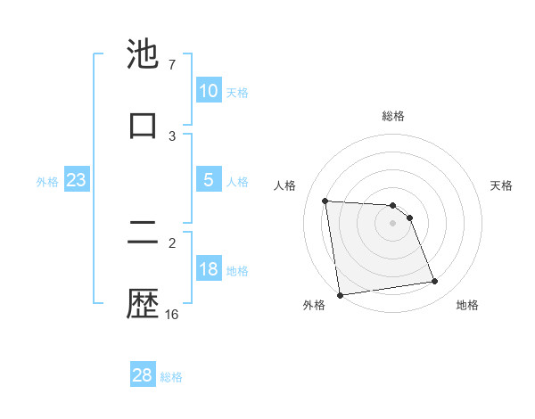 池口 二歴さんの外格は23画の5点!