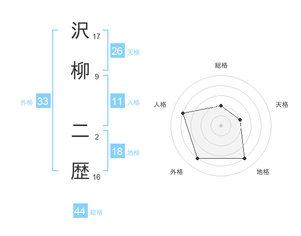 沢柳 二歴さんを姓名の画数から五運を鑑定