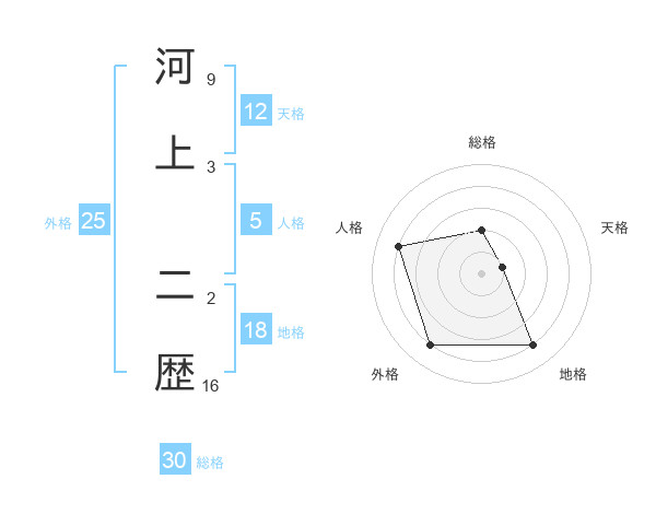 河上 二歴さんの総格は30画の2点!