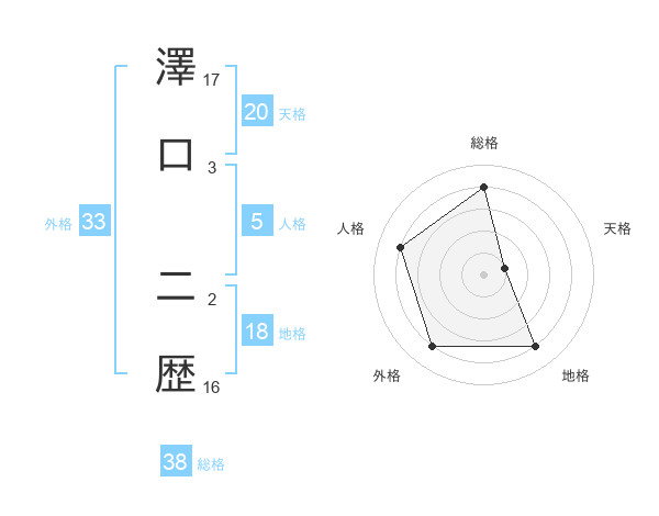 澤口 二歴さんの総格は38画の4点!
