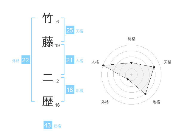 竹藤 二歴さんを姓名の画数から五運を鑑定