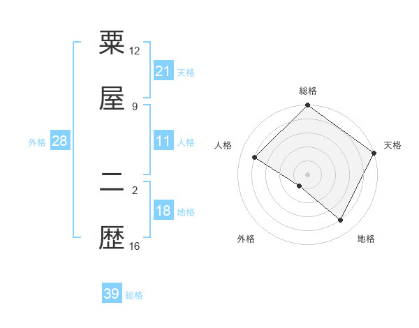 粟屋 二歴さんの総格は39画の5点!