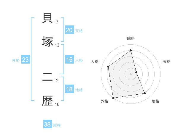 貝塚 二歴さんを姓名の画数から五運を鑑定