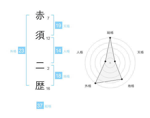 赤須 二歴さんを姓名の画数から五運を鑑定