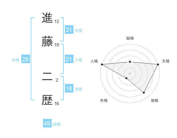 進藤 二歴さんの天格は31画の5点!