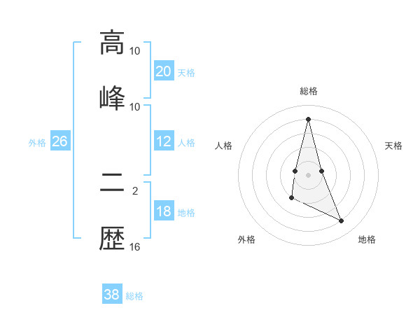 高峰 二歴さんの総格は38画の4点!